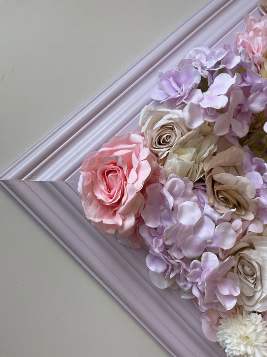 Bloemetje aan de wand zacht roze met gele bloemencombinatie
